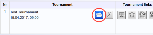 After creating your tournament you can start editing it. If you're still in the Prepare Tournament view, just click Save and Calculate Plan. If you're in the My Tournaments view, open the tournament by clicking the file symbol.
