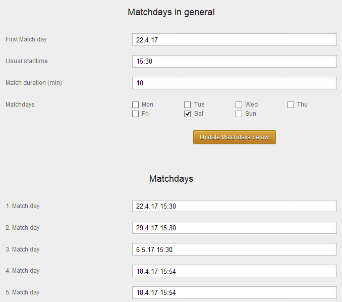 • Suppress match number: Normally users can see which number each match has got, i.e. when it will be played in the order of all matches. If this box is activated the number of the match will be hidden.